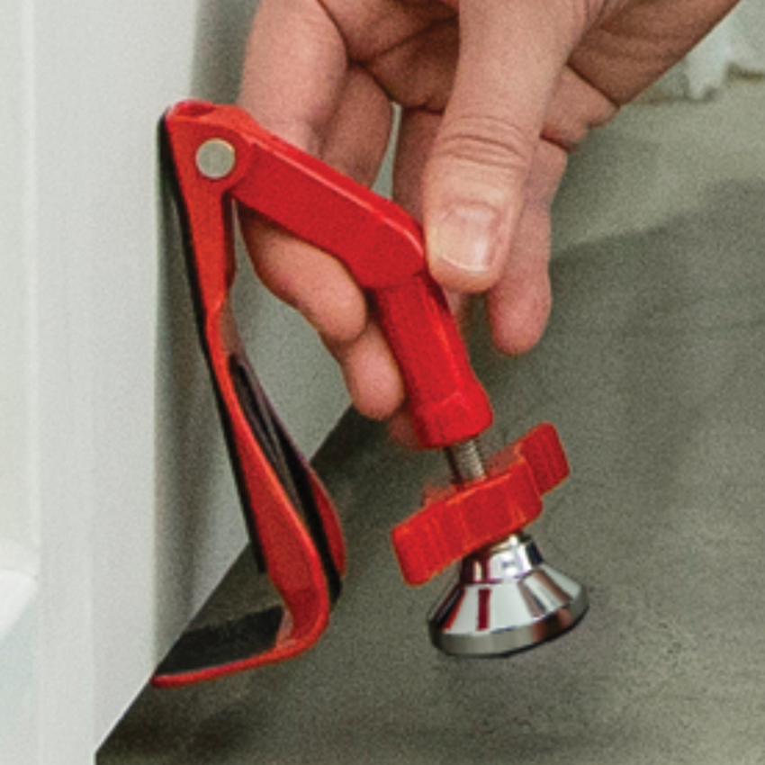 DoorJammers install in seconds without tools and is removable in a hurry - just pull the handle upward. The quick-release lifts DoorJammer away without fuss.
